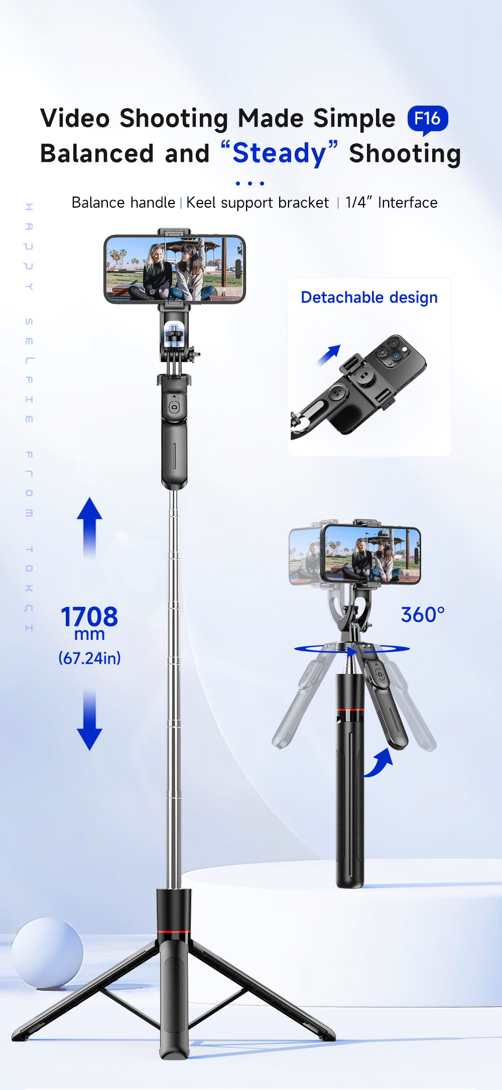 / F16 頑丈な三脚 安定バランス型 三脚自撮り棒