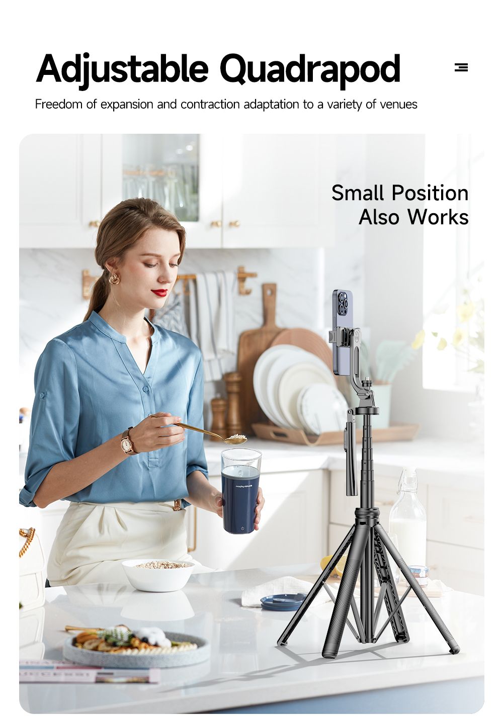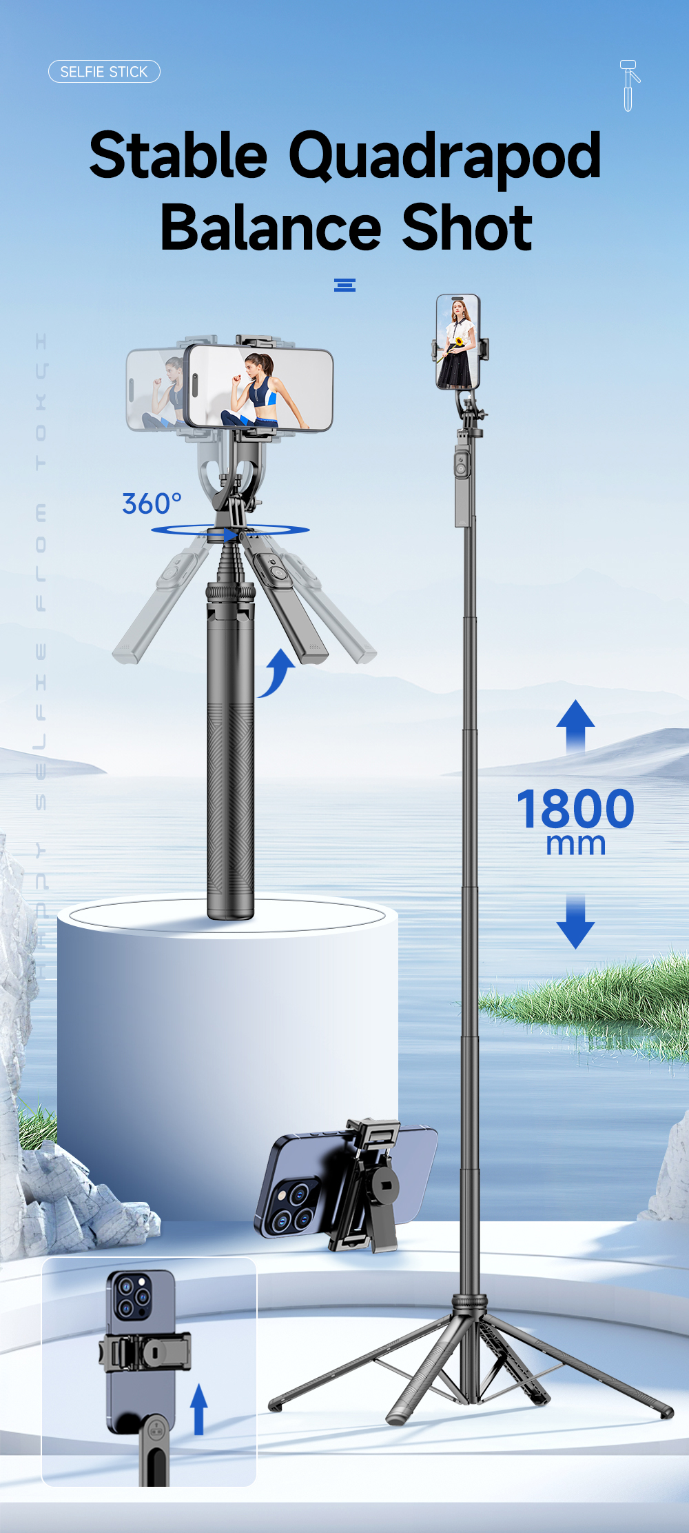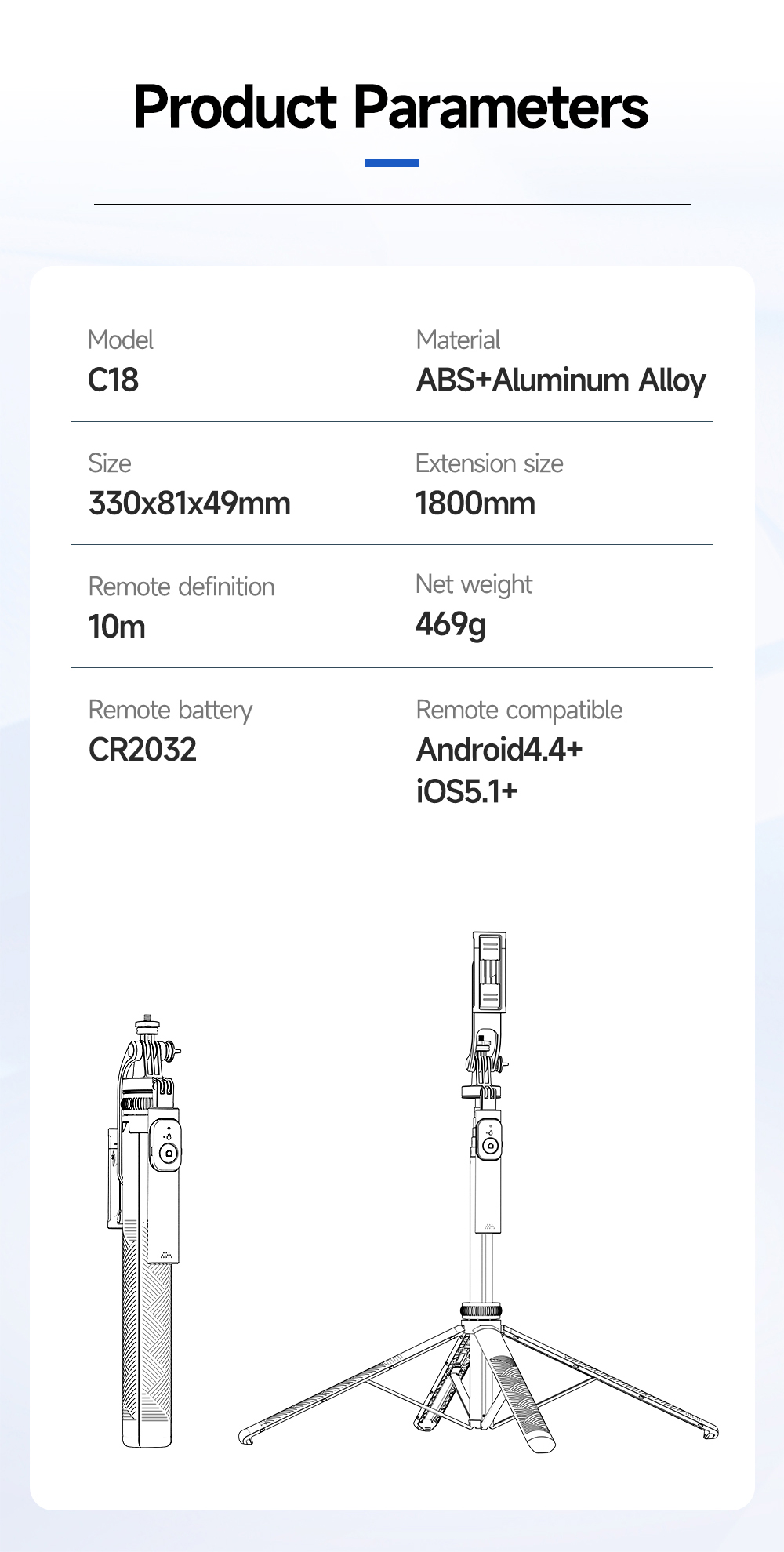 C01s Detachable Phone Holder – Detachable Light – Built-in Remote – Selfie Stick Tripod