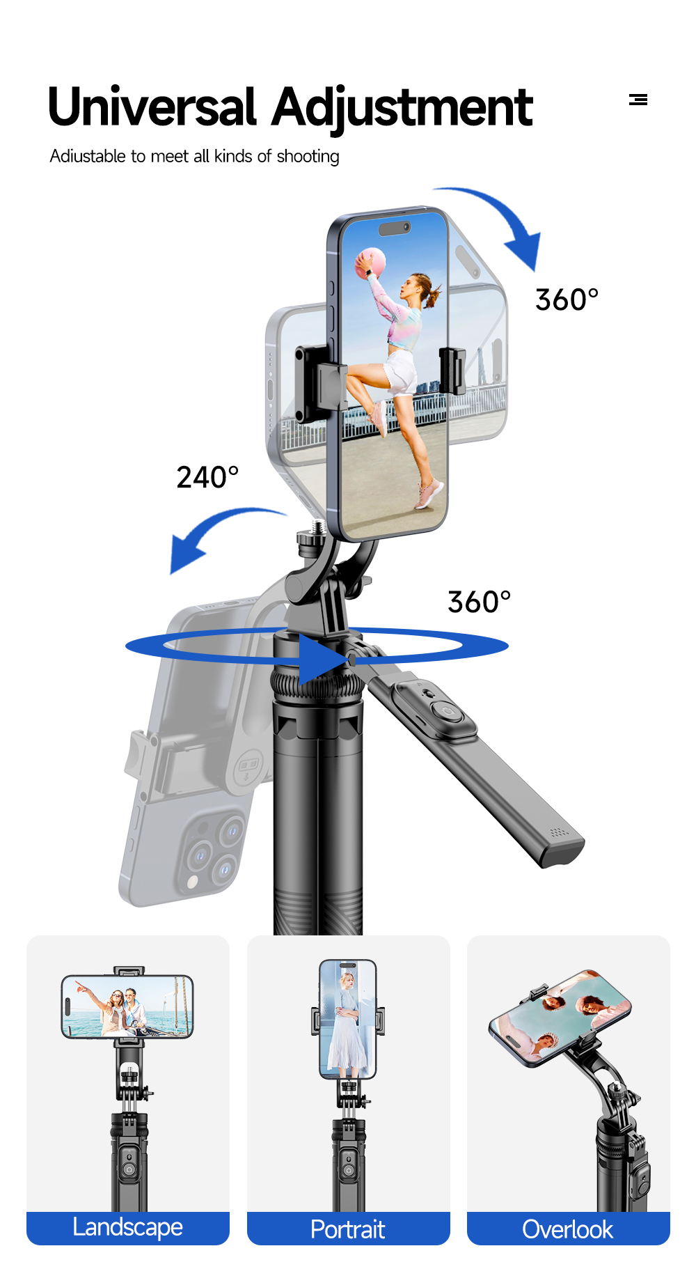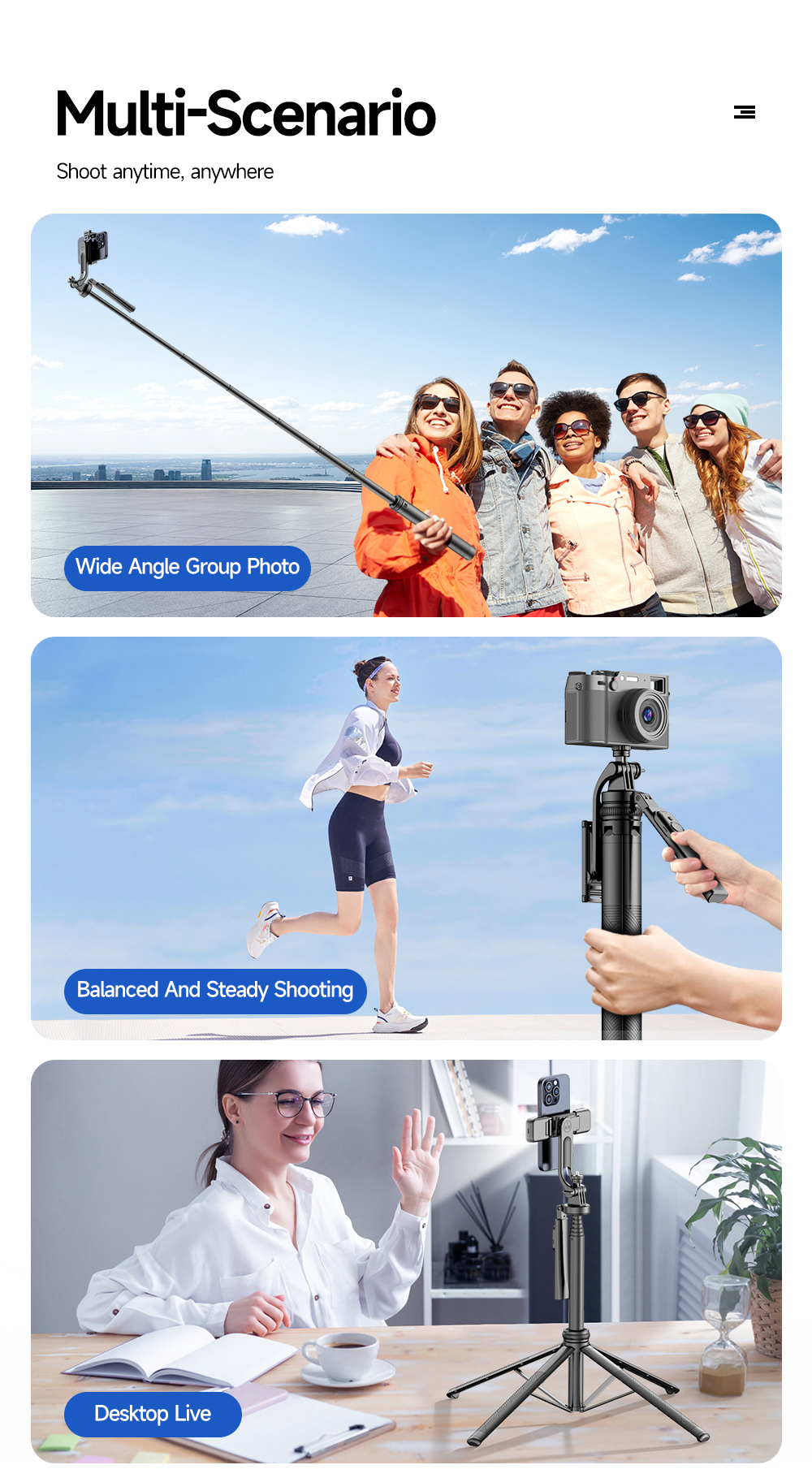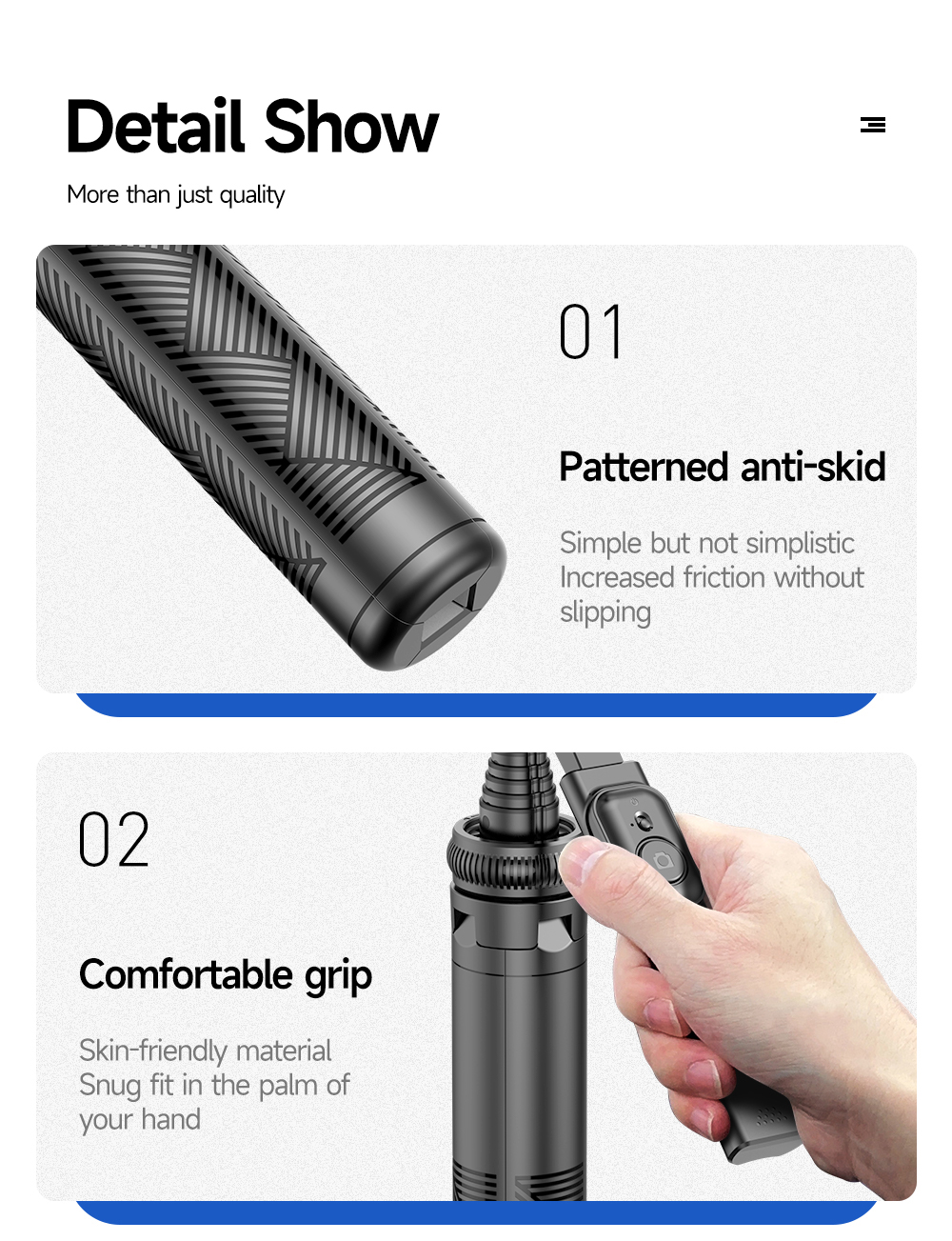 C01s Detachable Phone Holder – Detachable Light – Built-in Remote – Selfie Stick Tripod
