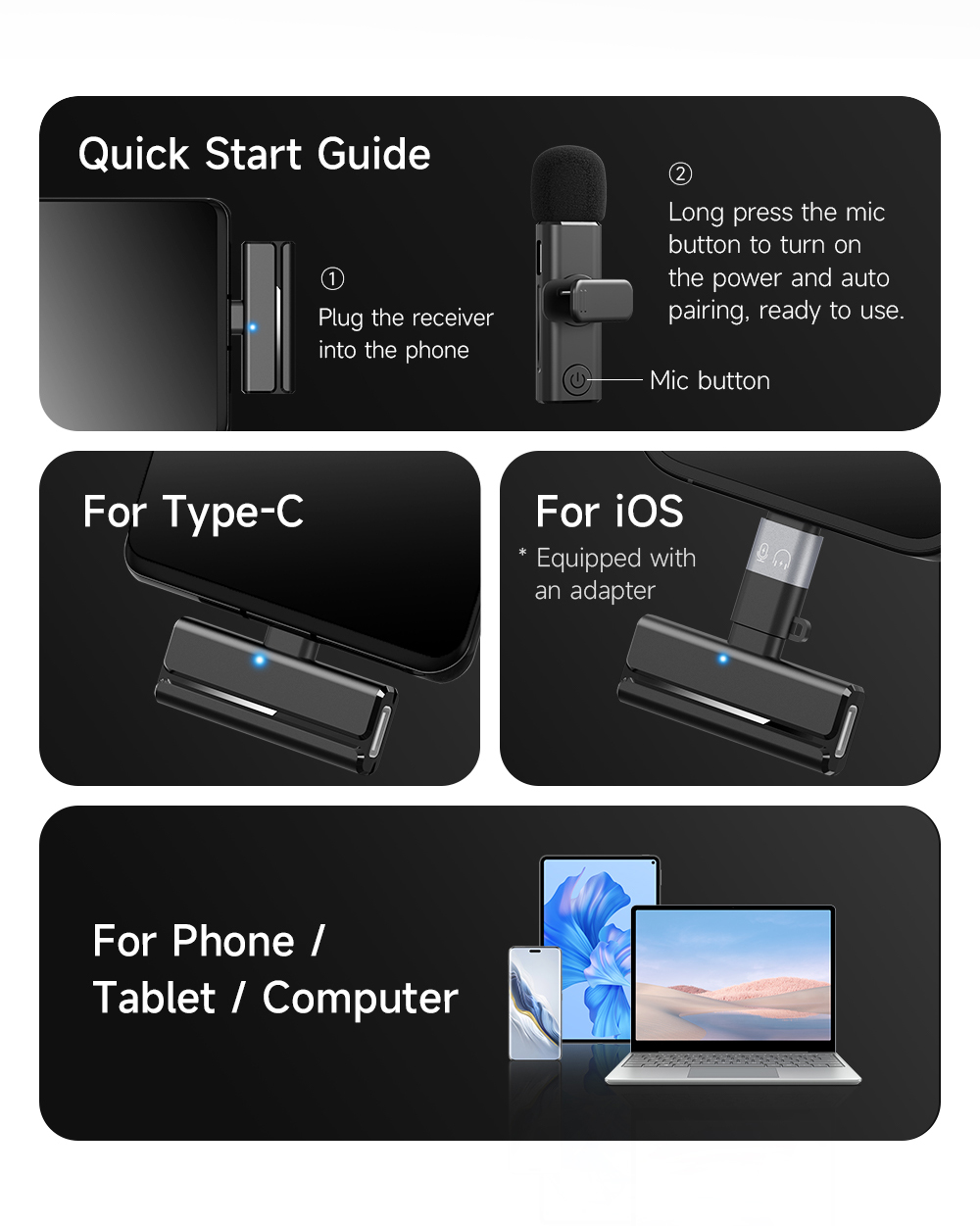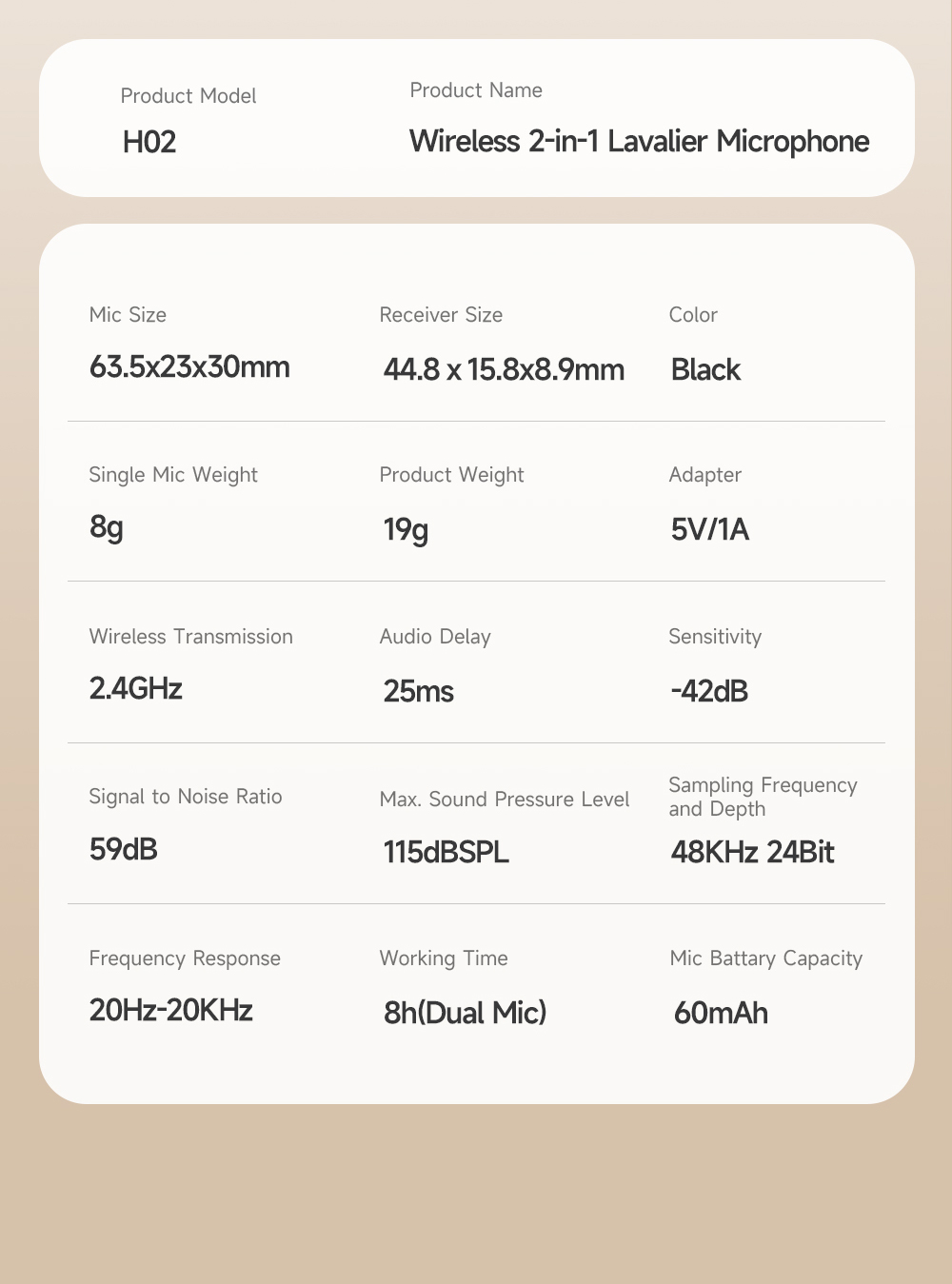 H02 Wireless Lapel Microphone with Dual-Channel Support