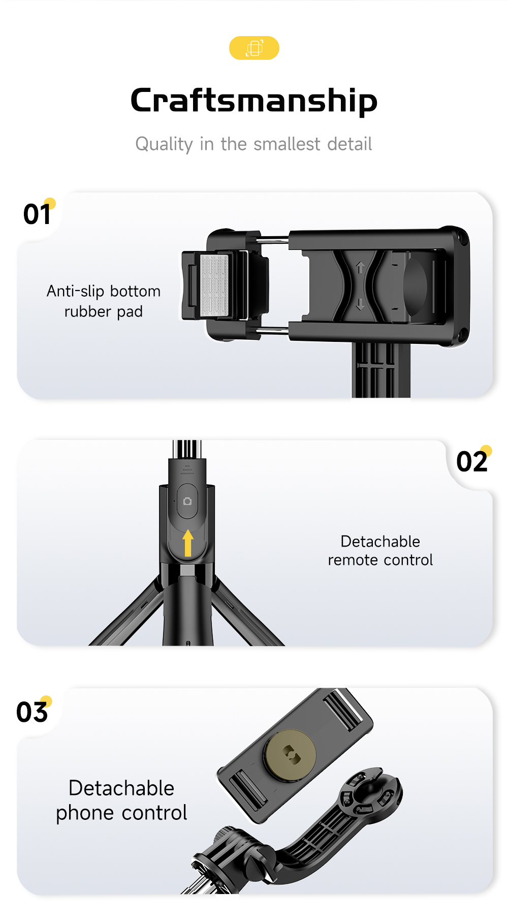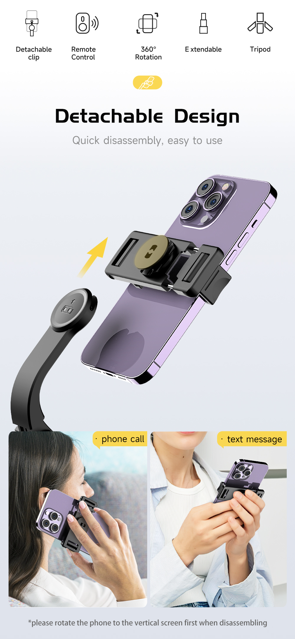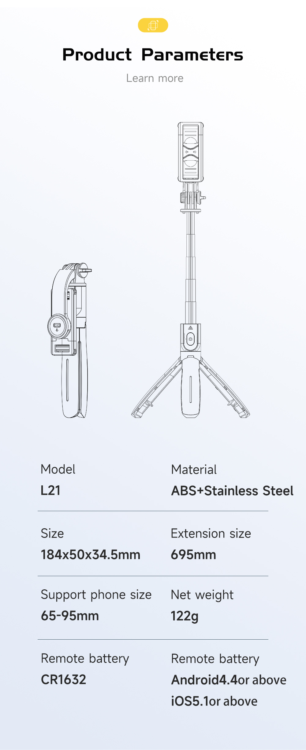 L21 Detachable Phone Holder with Built-in Remote Control and Selfie Stick Tripod